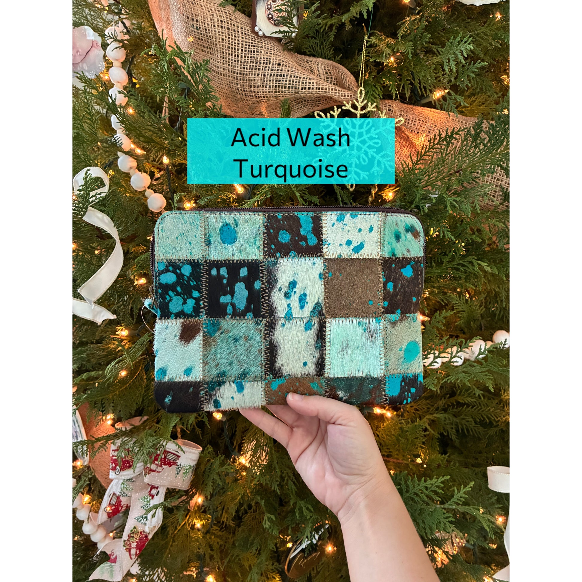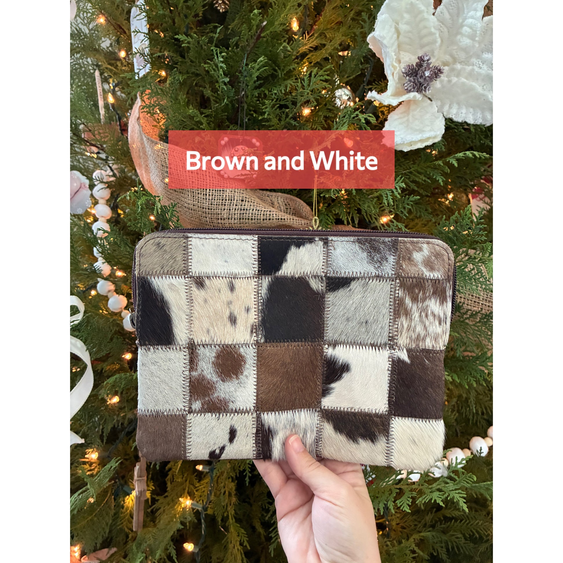 These bags are beautiful genuine hair-on cowhide with a checkered design! The front panel is cowhide and the back panel is a soft suede. These bags are fully lined and have a zipper closure.