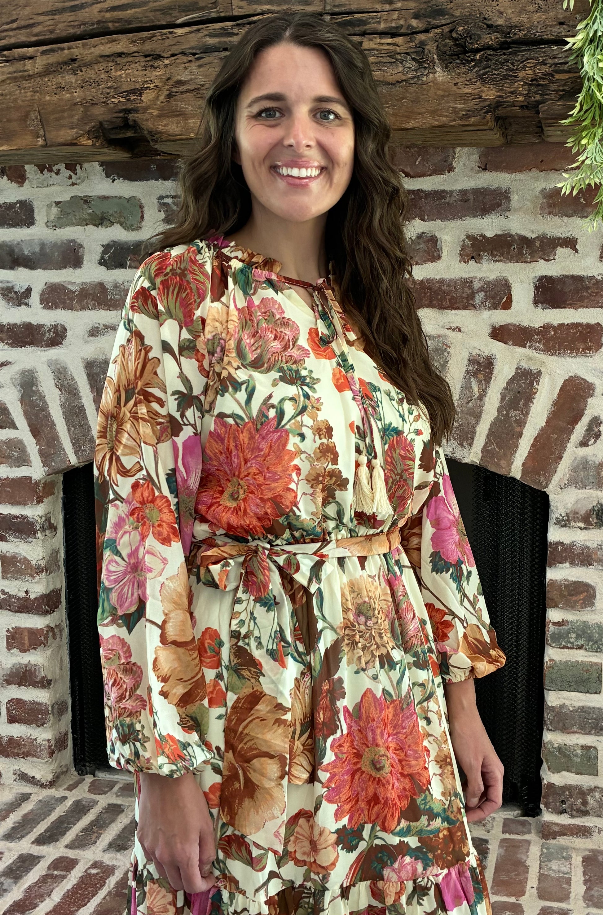 This beautiful maxi dress has a fully lined bodice and skirt! It also has a flattering elastic waist waistband.